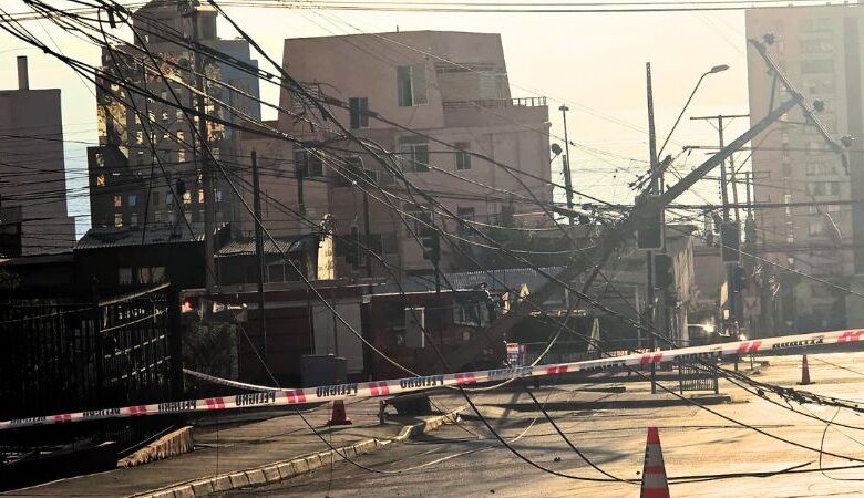 El tercer comandante del Cuerpo de Bomberos de Antofagasta, Vladimir Eterovic, explicó que “detectamos la caída de 12 postes de alumbrado, por lo que se segregó el área, llamando a dos unidades más al lugar, esperando que llegara CGE para que hiciera el corte de energía general del sector”. Además, destacó que trabajaron alrededor de 20 bomberos y que se contó con apoyo para el corte de tránsito.