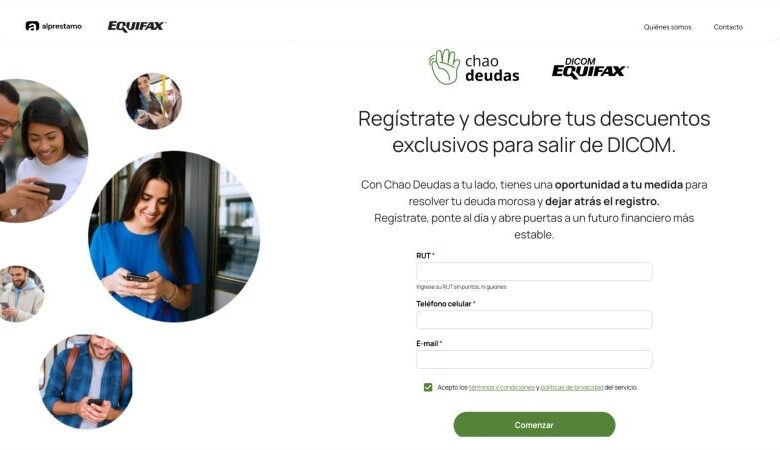 ChaoDeudas es el resultado de la alianza entre Equifax, una compañía global líder en datos, analítica y tecnología, y Alprestamo, una fintech especializada en conectar a las personas con productos financieros personalizados de manera rápida, transparente y eficiente. Con más de 45 años de experiencia en Chile y un sólido respaldo internacional en 24 países, Equifax, propietaria exclusiva de la base DICOM®, refuerza su compromiso con el desarrollo de soluciones innovadoras que generen un impacto económico positivo y promuevan la inclusión financiera, colaborando con actores clave del ecosistema financiero.