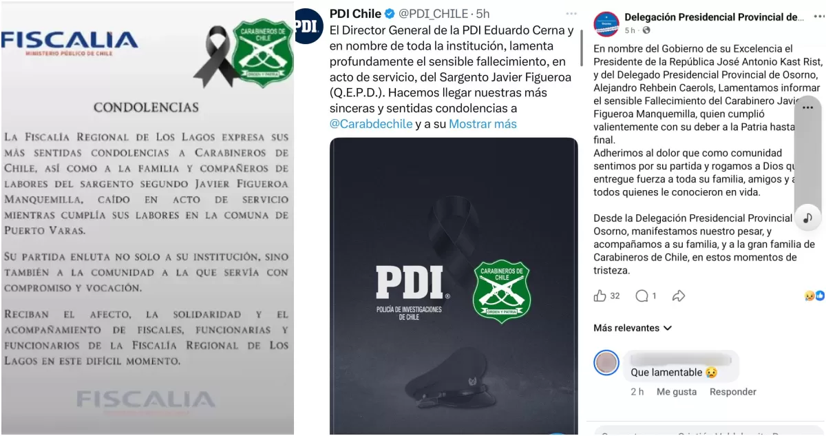 La aclaración surge luego de que, durante las primeras horas de la jornada, diversas cuentas oficiales de organismos públicos informaran el fallecimiento del funcionario, señalando que habría muerto tras permanecer más de una semana con muerte cerebral. Entre las instituciones que difundieron esa información se encuentran la Fiscalía de Los Lagos, la Policía de Investigaciones (PDI) y la Delegación Presidencial Provincial de Osorno.